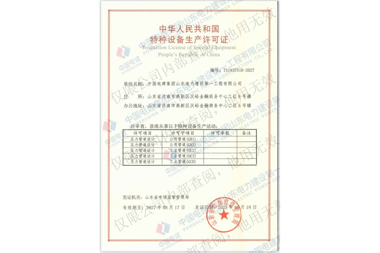 特种设备生产许可证(压力管道设计)